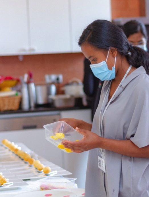 Alida practises her cooking skills within the  nutrition team, alias Fody Project, at Education For Madagascar. She is continuously practising her French with Education For Madagascar.